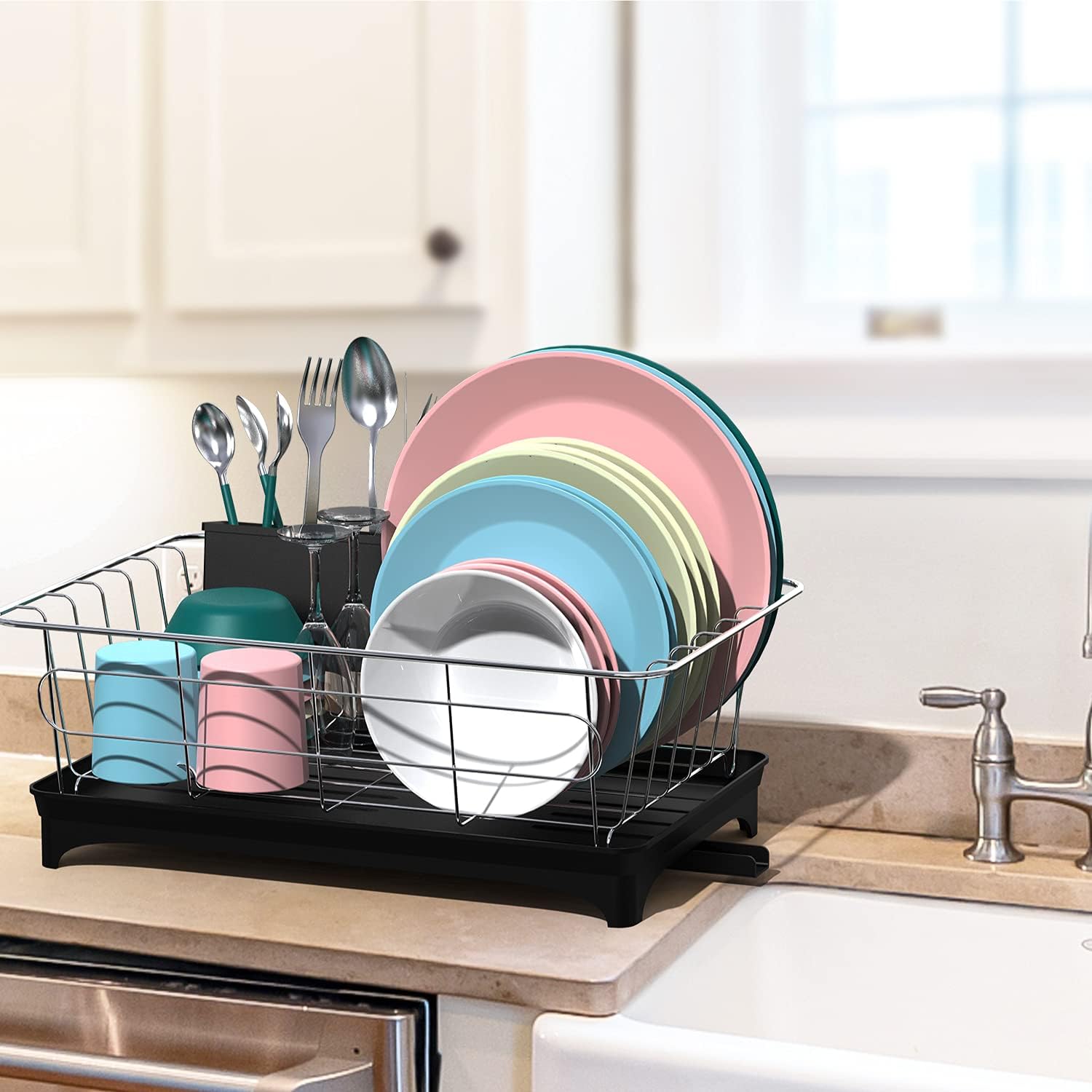 Stainless steel over the sink dish drainer. Product title rubbermaid antimicrobial sink dish rack drainer set,. The rubbermaid dish drainer neatly organizes dishes after they have been washed. 3.5 out of 5 stars. 4.5 out of 5 stars.