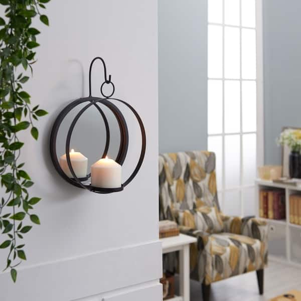 A Decorative Rustic Metal Hanging Wall Candleholder Round Wrought Iron Pillar Candle Sconce With Mirror Danya B Home Decor Candleholders from images-na.ssl-images-amazon.com Reproduction of an early 19th century mirrored sconce Ships free orders over $39. Or best offer +$17.28 shipping. Made of iron and antiqued mirror glass; Only 1 available and it's in 1 person's cart. 6 s x 2 p o m o s n 0 y 0 n s n o r e d. Illuminate a dull or drab space with the charming danya b. Whether adding light or adding ambience, these wall sconces look great in hallways, living rooms, and even bedrooms.